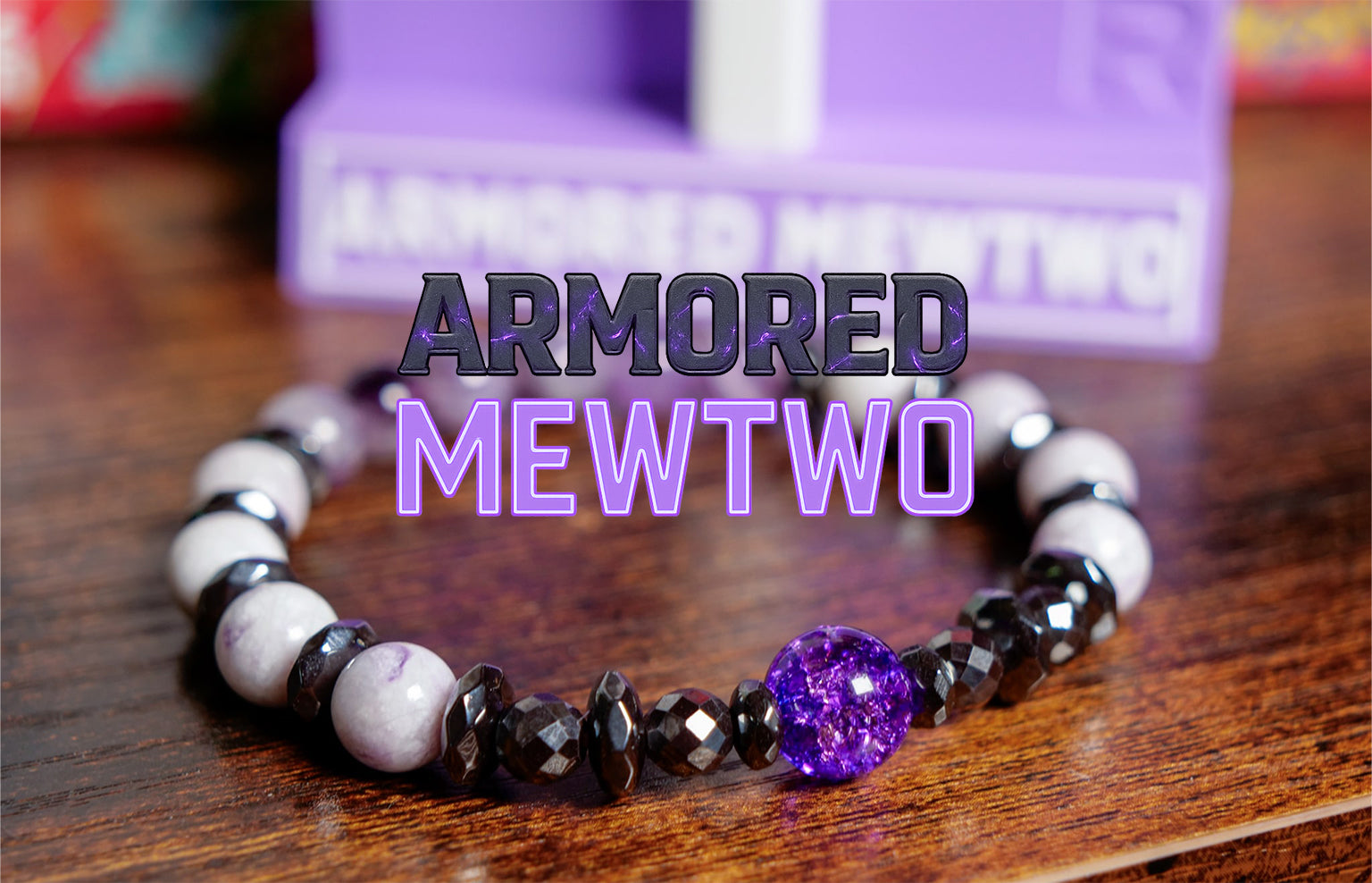 Armored Mewtwo Gemstone Bracelet – Pre-Order (Jasper, Amethyst, Hematite, Quartz) + Free Display