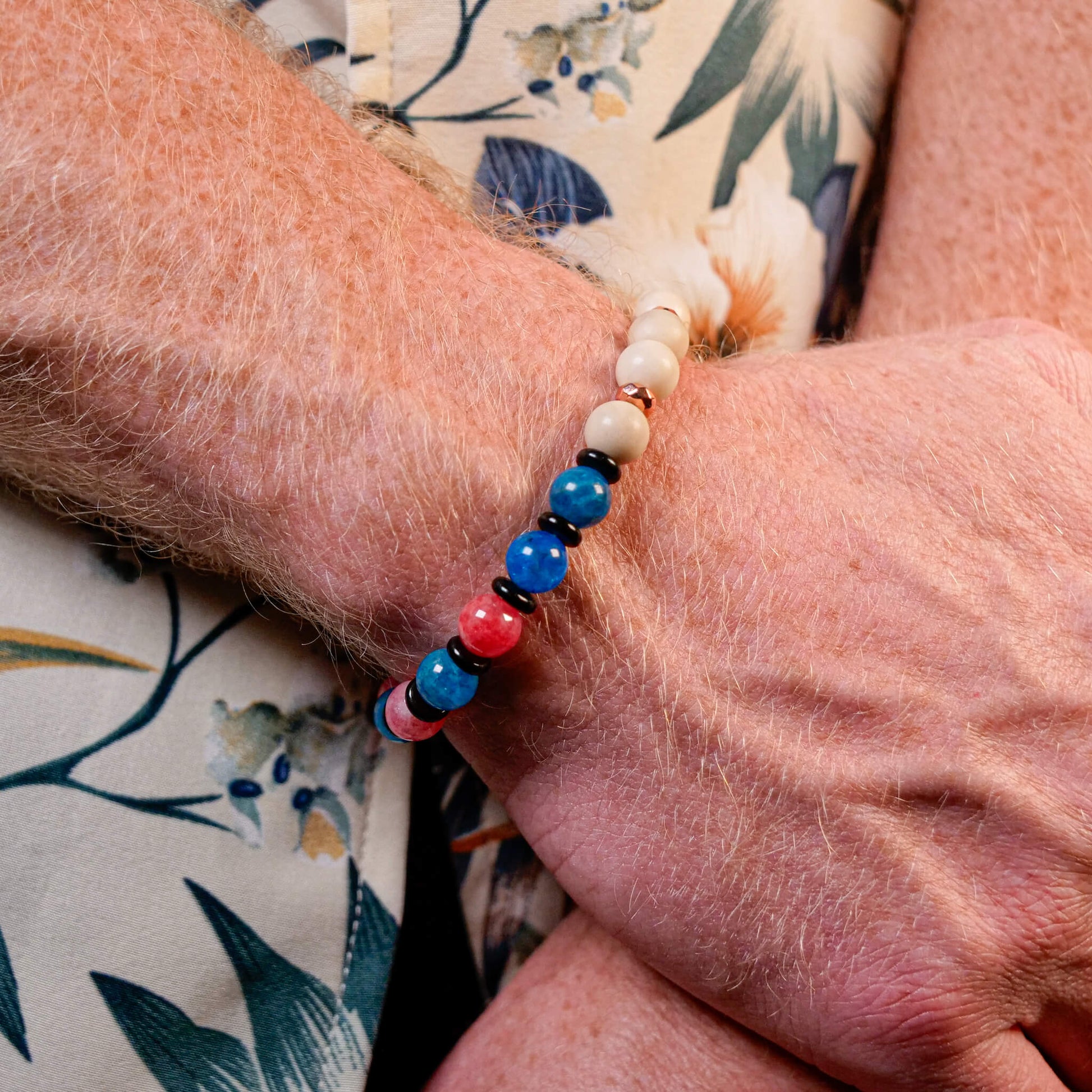 From overlooked to unforgettable—this handcrafted bracelet honors Milotic’s journey from humble beginnings into radiant beauty. Designed as a symbol of transformation and self-worth, it features a graceful blend of Fossil Rock, Rose Gold Hematite, Apatite, Pink Jade, and Onyx.