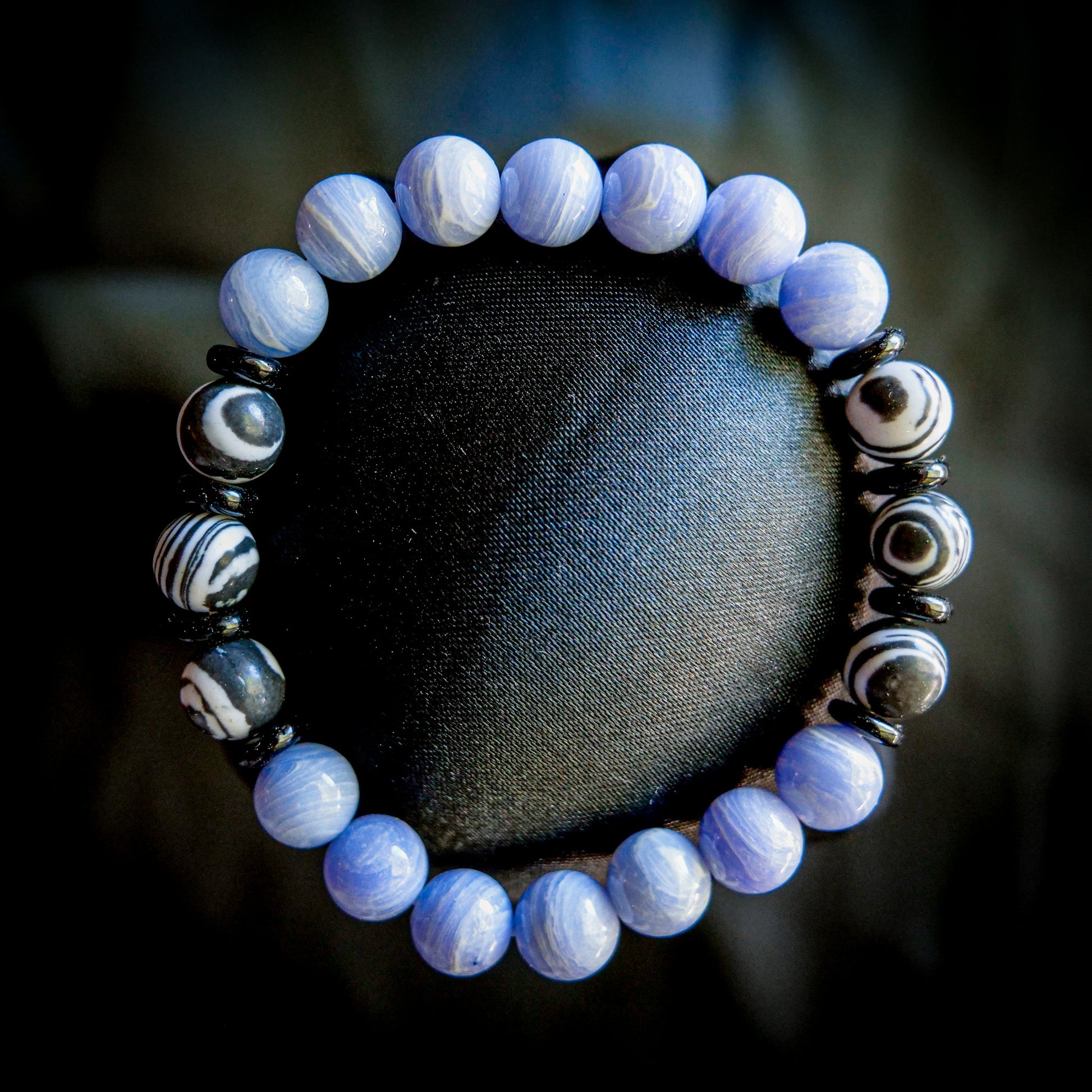 Inspired by Poliwhirl’s iconic spiral and water-type charm, this bracelet blends imitation Blue Lace Agate, imitation black-and-white Malachite, and polished Onyx for a clean, fluid look. Crafted with strong crystal elastic, it’s comfortable, durable, and made to move with you.